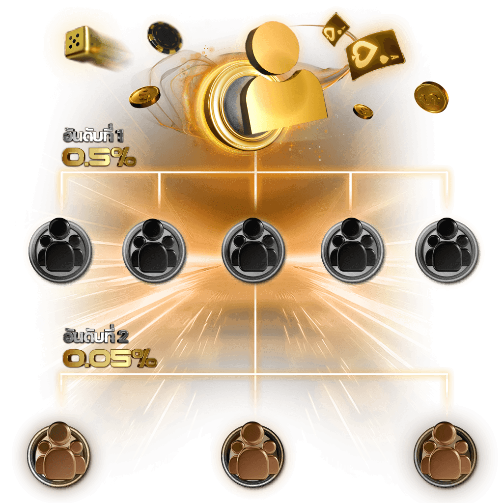 ท่านจะได้รับส่วนแบ่งเริ่มต้น ในลำดับที่ 1 0.5%ตัวอย่าง: ลูกค้าแทง 10,000 บาท,ท่านจะได้รับค่าคอมมิชชั่น 50 บาท(ได้ทุกรายการแทงของลูกค้า)